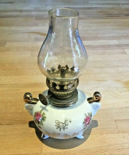 Title (ebay affiliate link): Vintage Miniature oil lamp - Ceramic/glass / Empire made - 6" / 15cm tall
