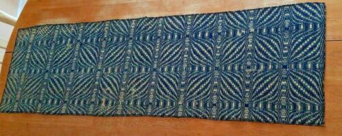 Primitive Early ANTIQUE Coverlet Table Runner Blue & Natural 38" L Farmhouse