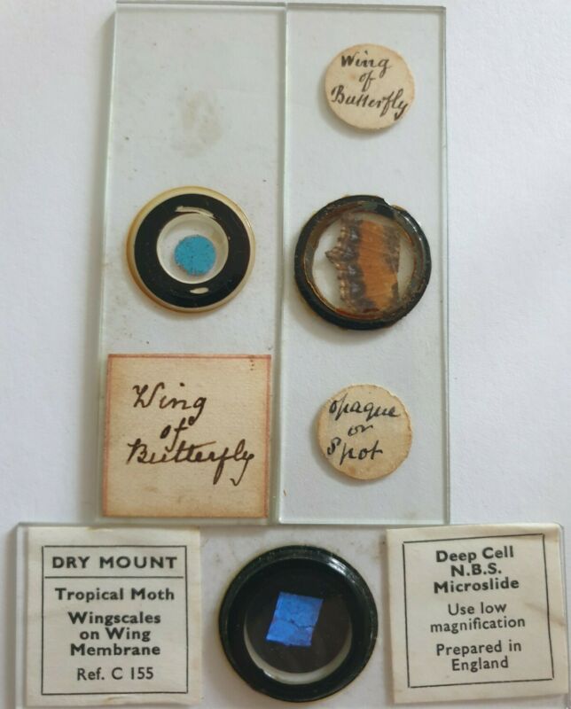 THREE MICROSCOPE SLIDES BUTTERFLY WING SECTIONS