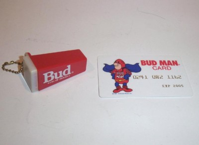 Title (ebay affiliate link): Vintage Unused 2005 BUD MAN Card, T Rex Viewer Keychain