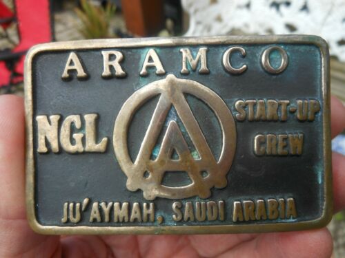 Title (ebay affiliate link): BELT BUCKLE; ARAMCO ( OIL) NGL START UP CREW;JU''AYMAH SAUDI ARABIA