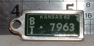 vtg novelty mini kansas license plate 1962 key chain
