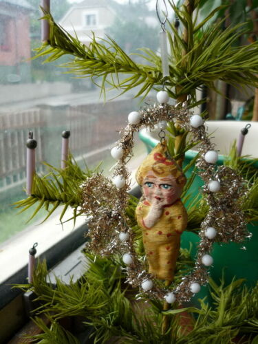 Title (ebay affiliate link): VTG.PAPIER BABY IN TINSEL ROUND CHRISTMAS TREE ORNAMENT