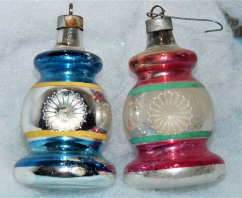 Title (ebay affiliate link): PAIR~Vtg~1950s~Rail Road LANTERNS~Double Indent~Premier Glass Xmas Ornaments
