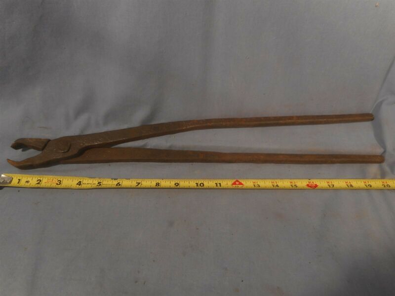 Antique Primitive Blacksmith Forging Hardy Tool Fire Tongs Pliers VTG 20-1/2"