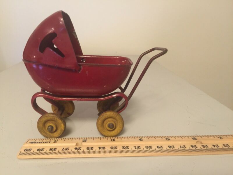 Title (ebay affiliate link): Doll Baby Buggy Carriage Vintage 1930s Wyandotte Pressed Steel Wooden Wheels Red
