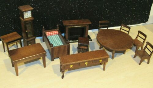 LOT 12 PIECES of VINTAGE/ANTIQUE WOOD DOLLHOUSE FURNITURE PRICE PRODUCTS EUC