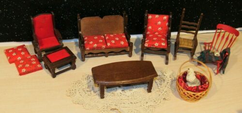 LOT 10 PIECES of VINTAGE/ANTIQUE WOOD DOLLHOUSE FURNITURE PRICE PRODUCTS EUC