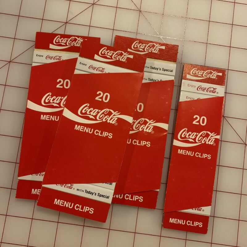 Title (ebay affiliate link): D13 ORIGINAL VINTAGE COCA COLA MENU CLIPS 2 SIZES 4 packs total