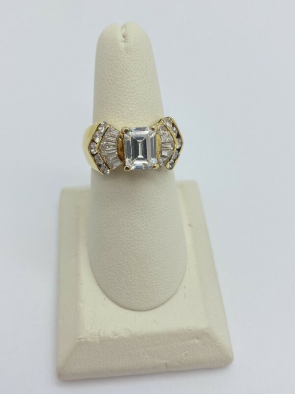 CL 925 Gold Over Sterling Silver Multi Cut CZ Engagement Style Ring Size 7