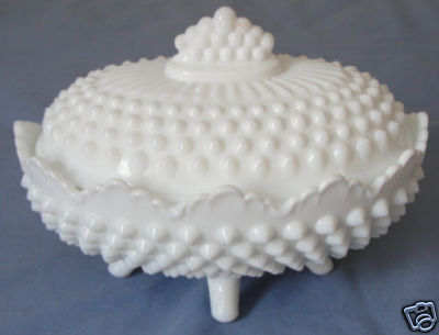 FENTON HOBNAIL MILK GLASS FOOTED CANDY DISH-OVAL W/LID