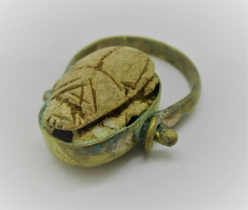 Title (ebay affiliate link): BEAUTIFUL ANCIENT EGYPTIAN FAIENCE SCARAB BEAD IN A GOLD GILT SWIVEL RING