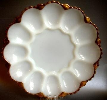 Vintage Fire King egg plate milk glass gold rim