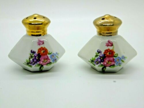 Vintage Small White Gold Top Floral Design Ceramic Salt & Pepper Shaker Set