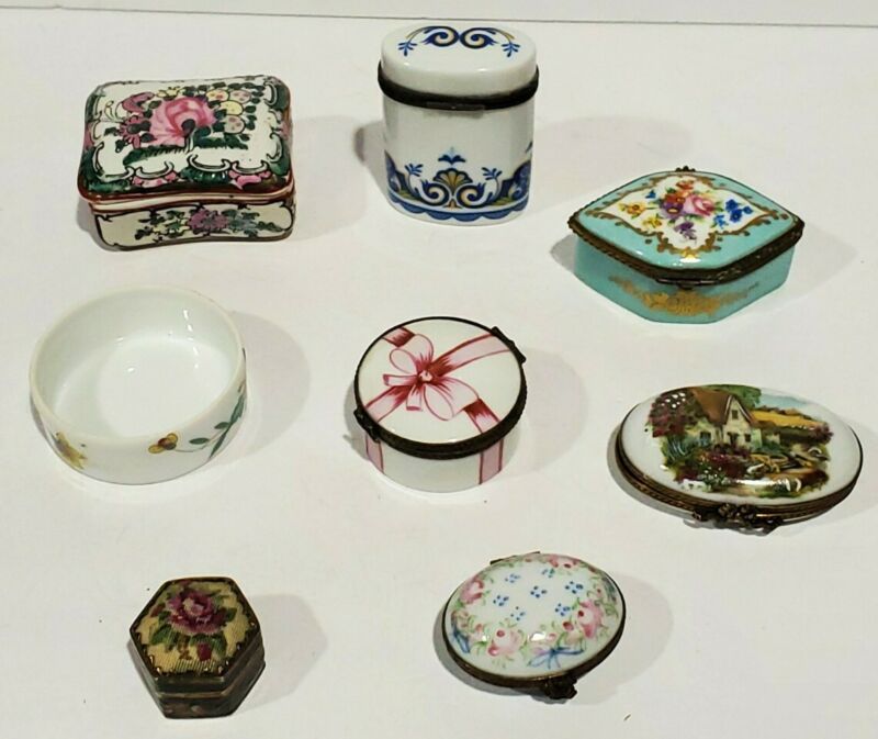 Lot Of 8 Vintage ~ LIMOGES FRANCE PEINT MAIN~ TRINKET BOXES Assorted