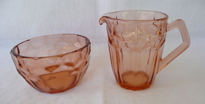 PINK DEPRESSION GLASS MILK / CREAM JUG & SUGAR BOWL