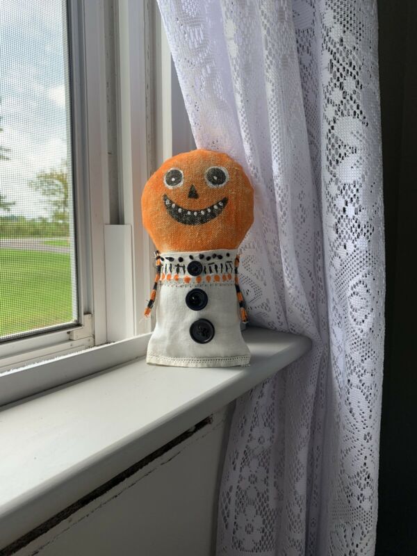 Title (ebay affiliate link): Primitive Halloween Pumpkin Doll Shelf Sitter Handmadeinohio