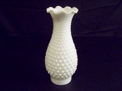 OIL LAMP SHADE GLOBE CHIMNEY MILK GLASS HOBNAIL RUFFLES