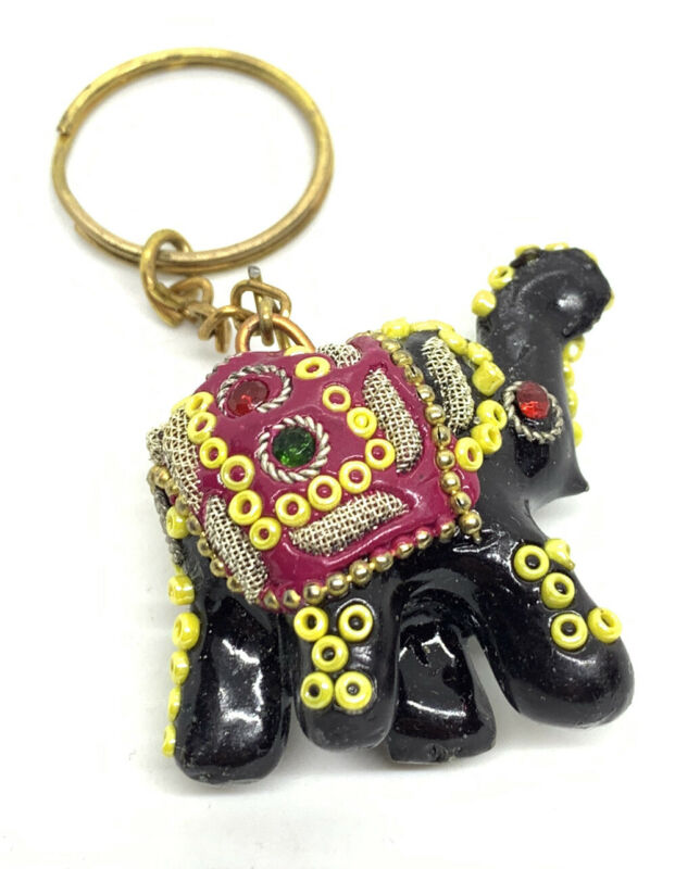 Title (ebay affiliate link): Beautiful Black Plastic Beaded Elephant Key Chain Vintage