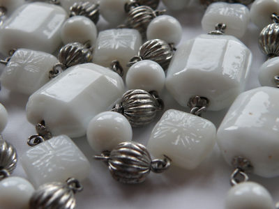 VINTAGE LARGE ORNATE MILK GLASS BEAD NECKLACE