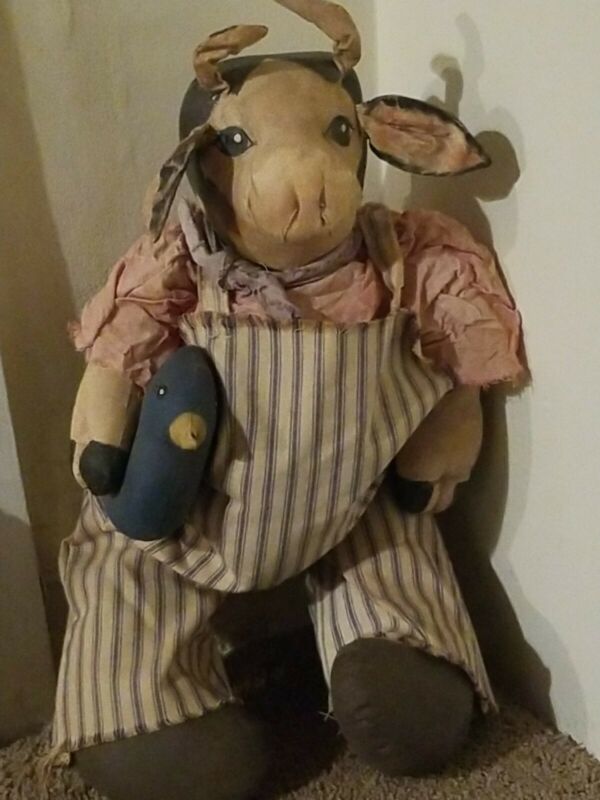 Title (ebay affiliate link): Large Primitive Antique Folk Art Cow Doll Early Stuffed Toy all handmade