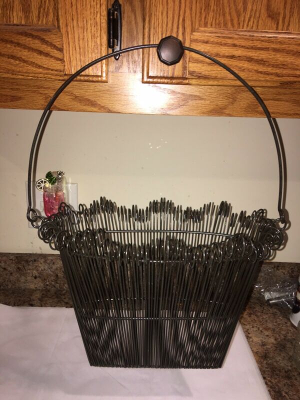 Antique Rustic Metal Wire Hanging Flower Basket Vintage Farmhouse Organizer