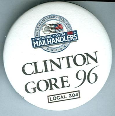 1996 NPMHU Postal Mailhandlers for CLINTON GORE Button