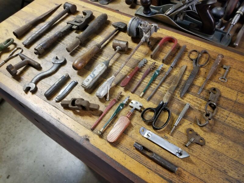 Title (ebay affiliate link): ANTIQUE Tools Mixed Tool Lot VINTAGE Brass Copper Hammers Collectible Smalls US