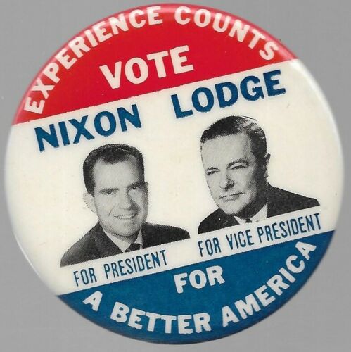 Title (ebay affiliate link): NIXON, LODGE FOR A BETTER AMERICA 1960 JUGATE POLITICAL CAMPAIGN PIN