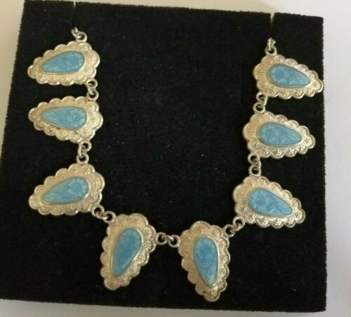 Antique sterling silver and guilloche enamel necklace - 13.9 gms