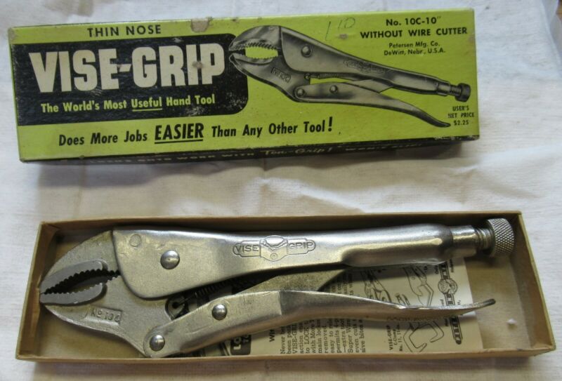 Title (ebay affiliate link): Vice Grips #10C, 10" and still in the box, the one and only Petersen Vice Grip