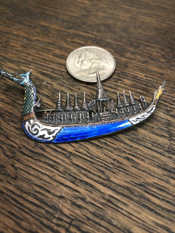 Title (ebay affiliate link): Antique Vintage Large Sterling Silver Enamel Dragon Boat Pin Siam As Is Enamel