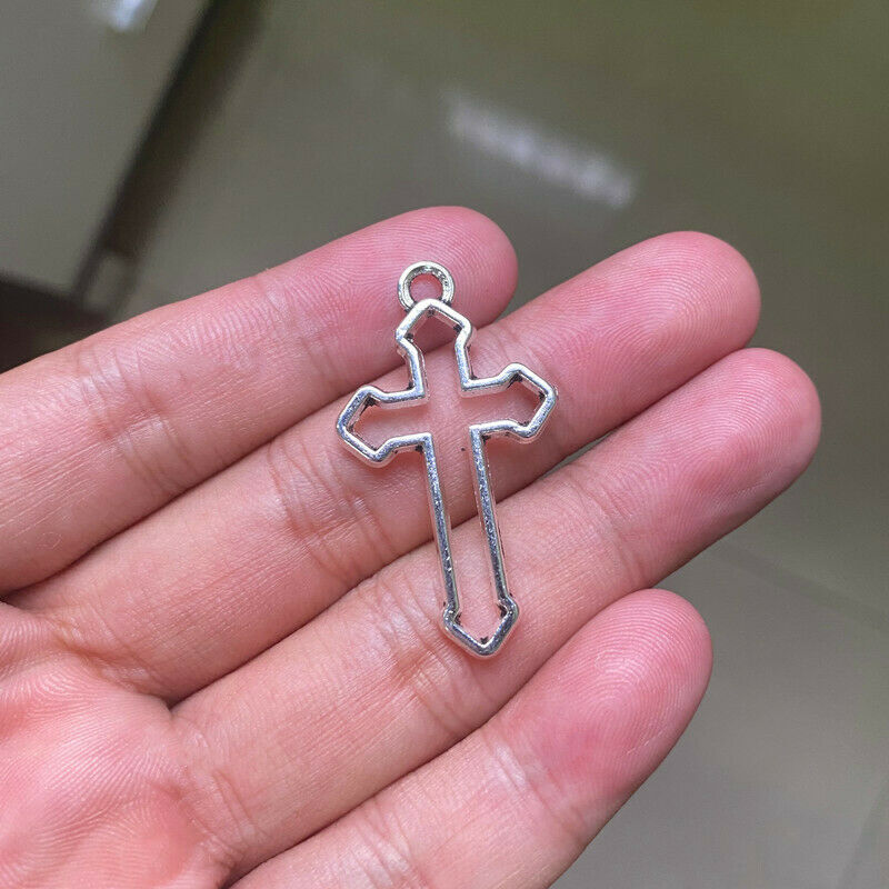 Title (ebay affiliate link): 6pcs 38x22mm Hollow Cross Charms Antique Silver Tone Making Jewelry