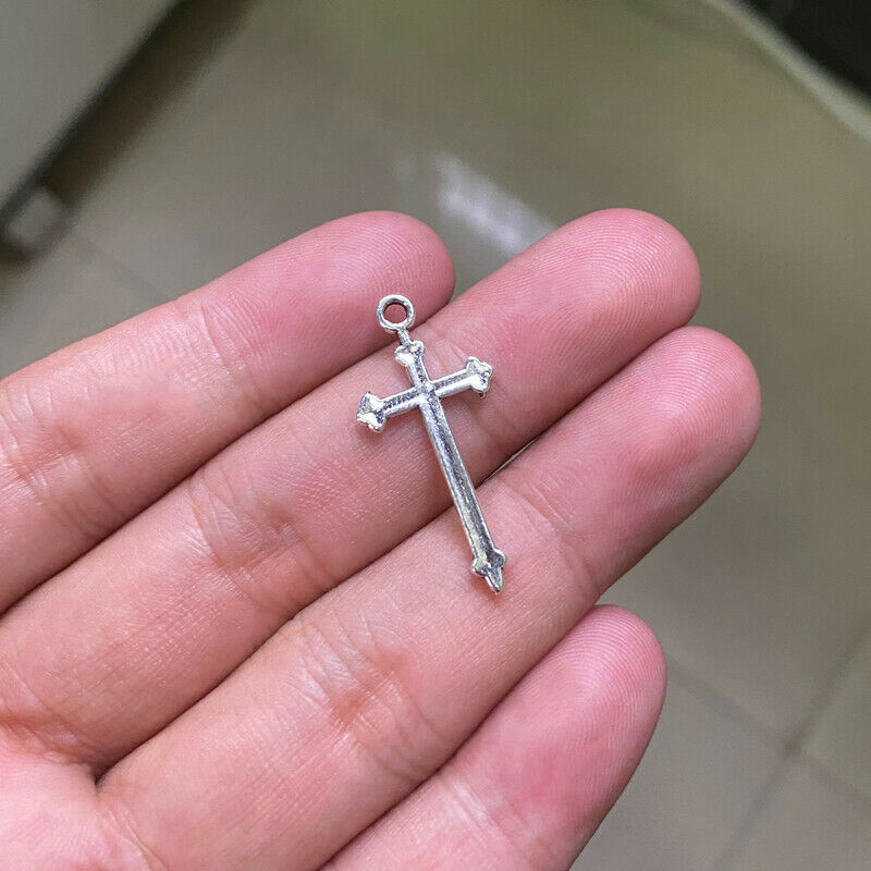 Title (ebay affiliate link): 10pcs 28x13mm Christian cross Charms Antique Silver Tone Making Jewelry