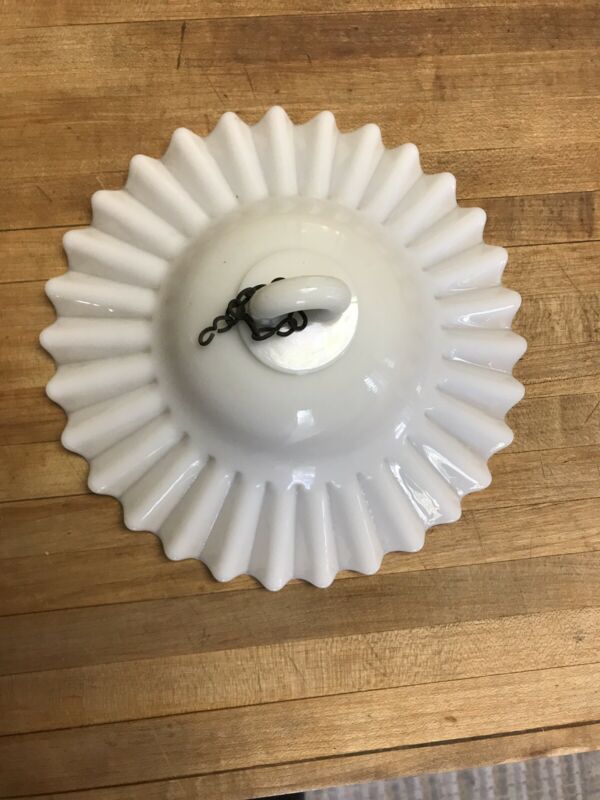 Vintage Milk Glass Fitter Hanging Oil Lamp Shade Ruffled Tutu Smoke Bell Light