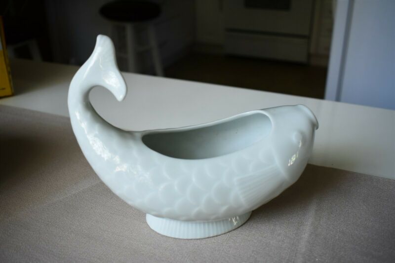 Dansk International France fish gravy sauce boat server white milk glass EX cond
