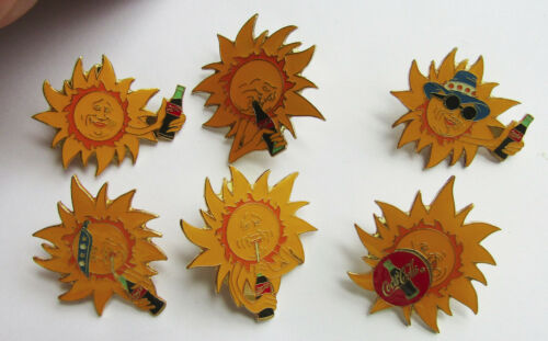 Lot of 6 different Coca-Cola Sun Pins, 1994 collectible advertising, very good