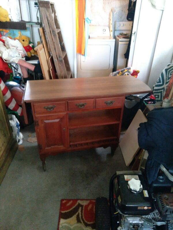 Antique Solid Hard Rock Maple Serving Cart On Wheels