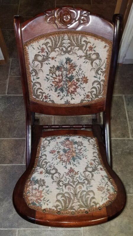 Title (ebay affiliate link): Folding Rocking Chair Floral Tapestry Solid Wood Vintage Upholstered