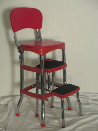 Title (ebay affiliate link): Kitchen Retro Vintage Cosco Red Step Stool Chair Ladder Metal Fold Out padded