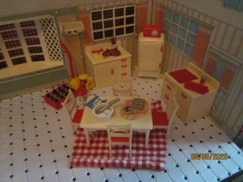 Title (ebay affiliate link): RENWAL COMPLETE KITCHEN SET CREAM & RED PLASTIC DOLLHOUSE FURNITURE MARX PLASCO
