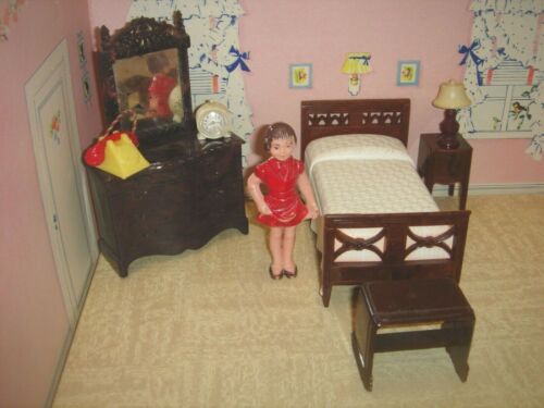 6 Piece Renwal Dollhouse Bedroom Furniture - 1940''s Dresser - Nylint Sister Doll