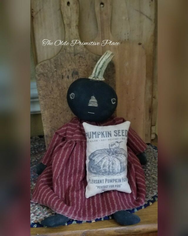 Title (ebay affiliate link): Primitive Handmade Pumpkin Doll With Feedsack/Fall/Autumn