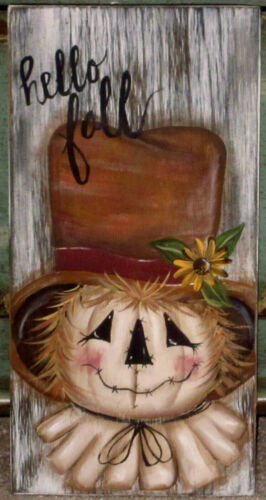 *~*PRIMITIVE*~* HP FOLK ART PRIM SCARECROW *~* HELLO FALL" *~* BOARD