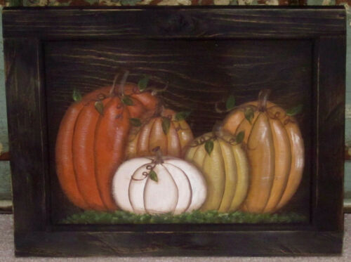 *~*PRIMITIVE*~* HP FOLK ART PRIM PUMPKINS *~* FALL *~* DOOR PANEL
