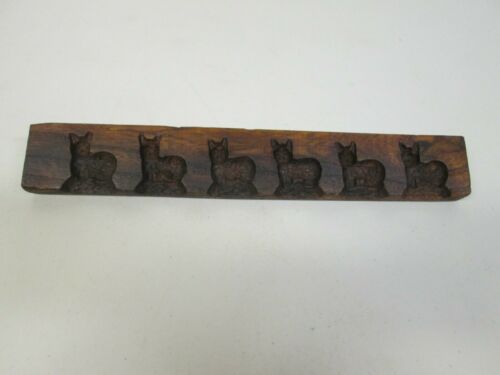 ANTIQUE ORIGINAL HANDMADE WOOD CAT BUTTER PAT MOLD IN GOOD CONDITION