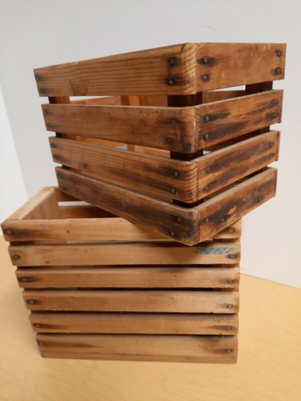Title (ebay affiliate link): 2 Primitive Vintage Boxes Slatted Wood, Primitive Handmade