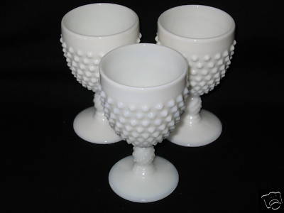 3 FENTON Milk Glass Hobnail 8 oz Water GOBLETS NR