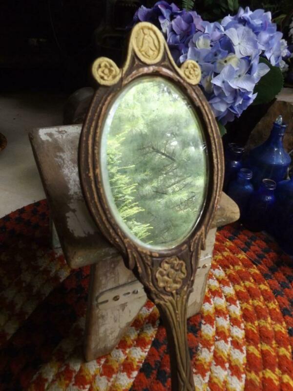 Title (ebay affiliate link): Beautiful Primitive Antique Art Deco Carved Wood Beveled Hand Mirror