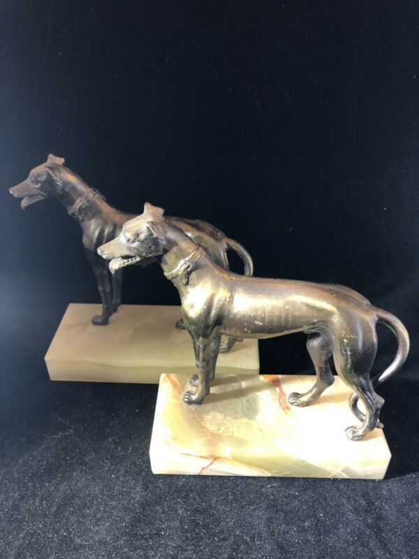 Antique Bronze Whippets on Marble,  Bookends or Door Stops